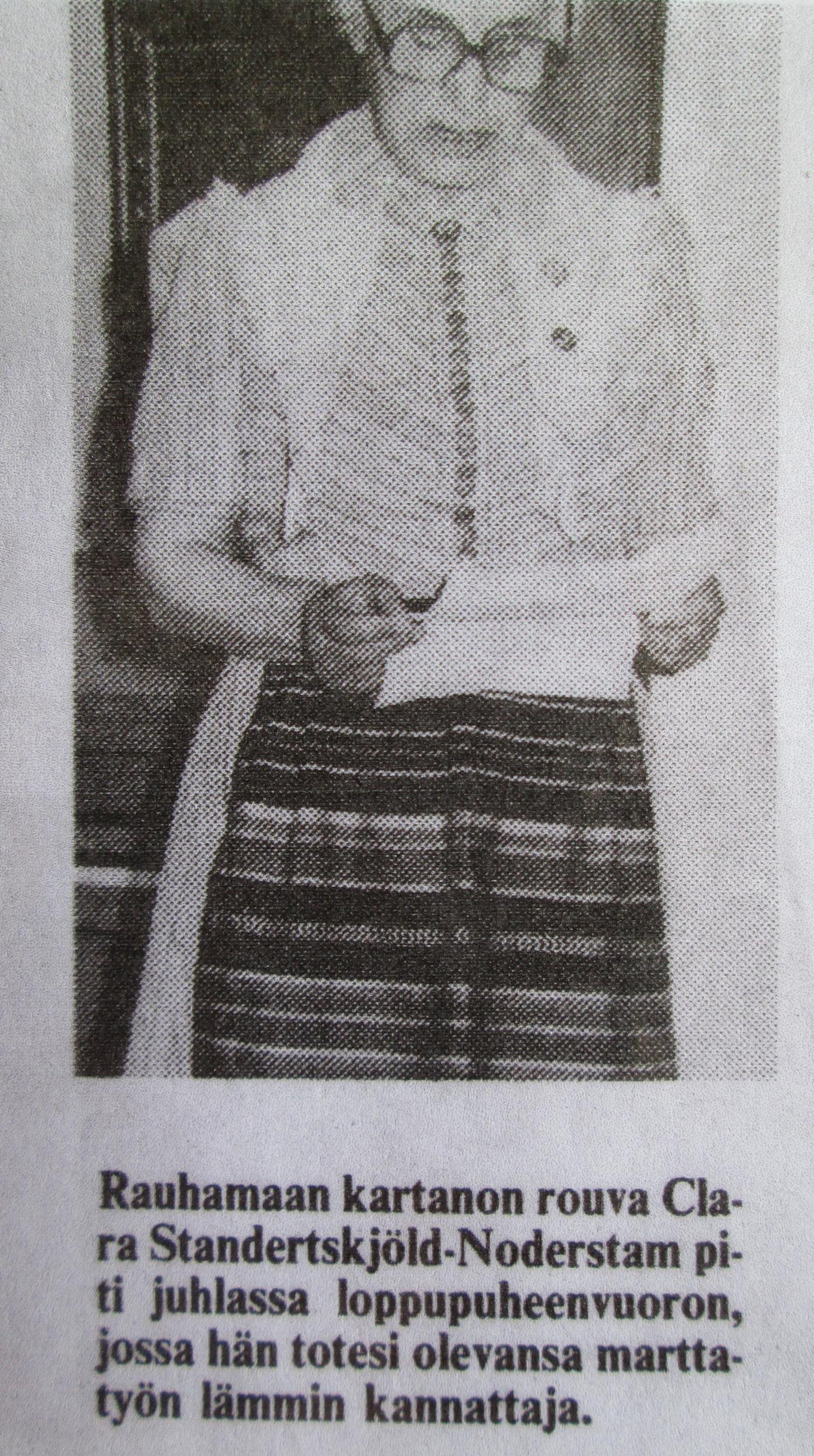 Loppupuheenvuorossa Clara Standertskjöld-Nordenstam totesi m.m. seuraavaa:"Marttaliike on elänyt perheessäni sen alkuajoista lähtien. Isoäitini oli ahkerasti luomassa ensimmäisiä marttayhdistyksiä Kymenlaaksoon. Myös äitini toimi ahkerasti marttatyössä valtakunnan tasolle asti. Itselleni on marttatyössä mukana oleminen ollut luonnollista, koska se on minulle läheistä."