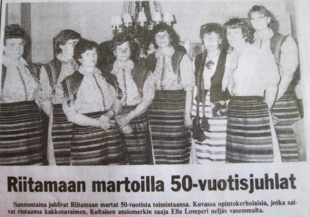 9.6.1985 Anjalan Riitamaan Marttayhdistys juhli puoli-vuosisataista taivaltaan, josta Anjalankosken sanomissa oli juttua m.m. tähän tapaan: