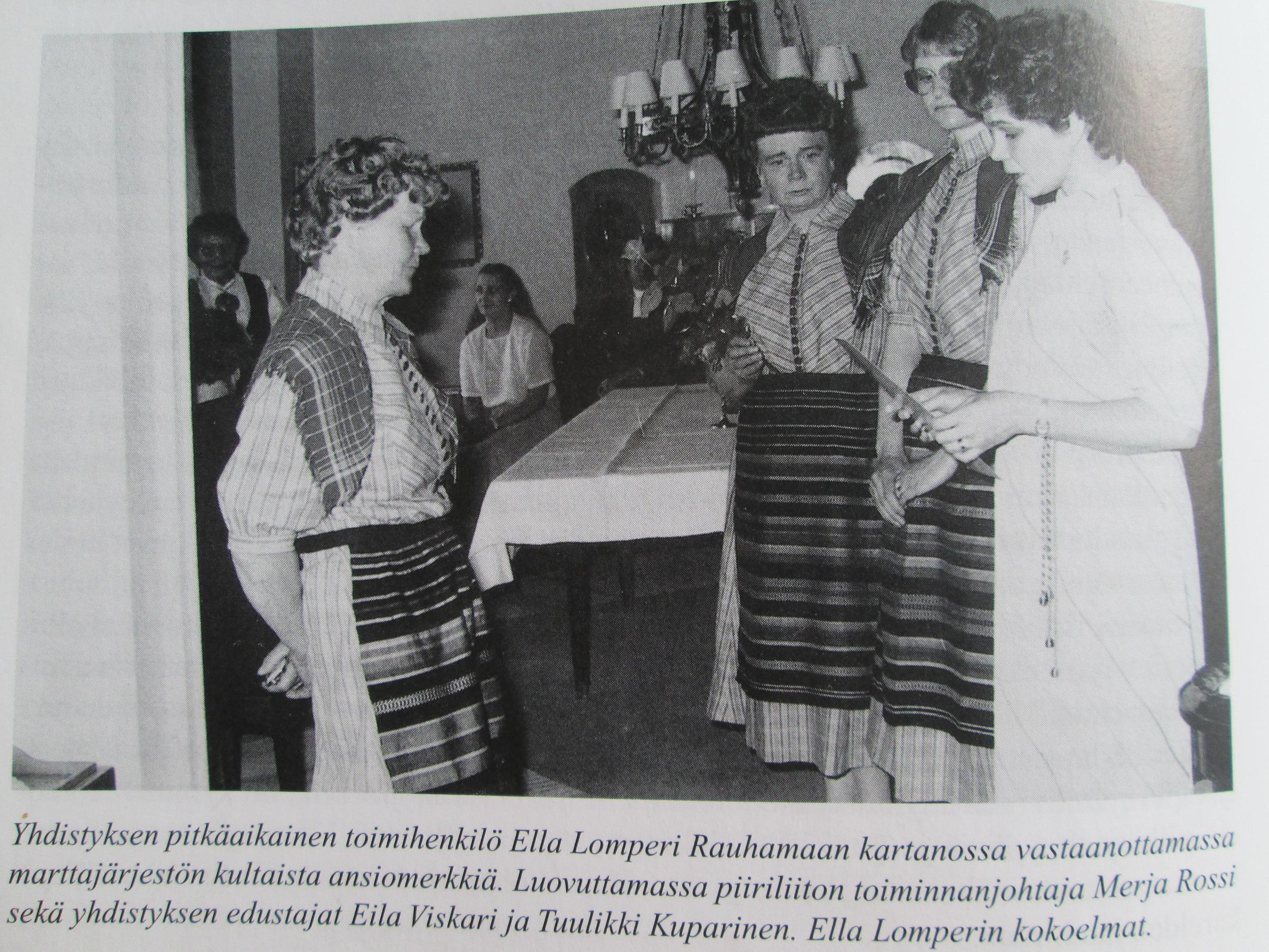 Ella Lomperi on ollut Riitamaan marttayhdistyksen kantavia voimia. Puheenjohtajakauden lisäksi hän toimi sihteerinä 35 vuotta ja myöskin piiriliiton hallituksessa. Juhlassa Ellalle luovutettiin kultainen ansiomerkki pitkästä työrupeamasta.